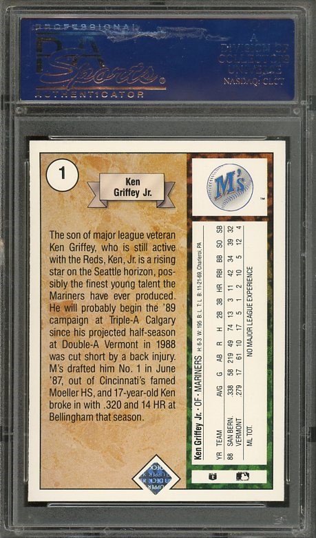 Lot # 33: 1989 Upper Deck Ken Griffey, Jr. RC #1 PSA GEM MINT 10