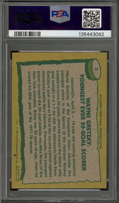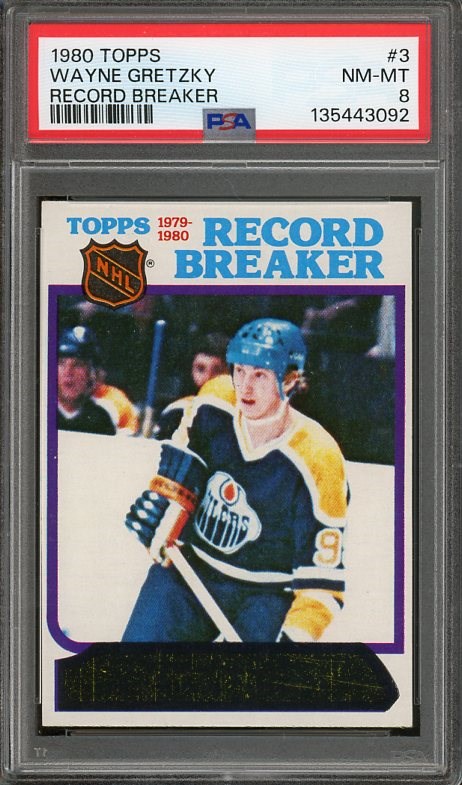 1980 Topps Wayne Gretzky Record Breaker #3 PSA NM/MT 8 - A tough card to find in high grade due to the centering and print quality. Here is a great PSA 8 in a new PSA holder.