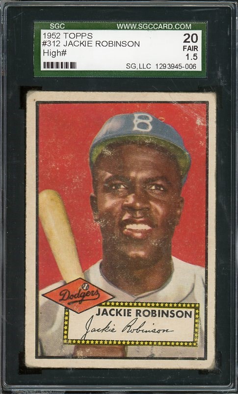 1952 Topps Jackie Robinson #312  SGC FAIR 1.5 - Up for auction is a well centered 1952 Topps High number Jackie Robinson.  An iconic card that is much tougher to find than his rookie!
