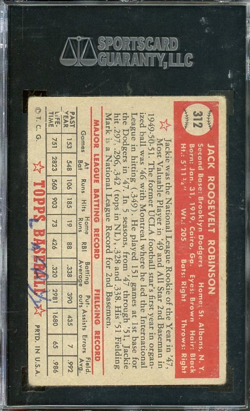 Lot # 5: 1952 Topps Jackie Robinson #312 SGC FAIR 1.5