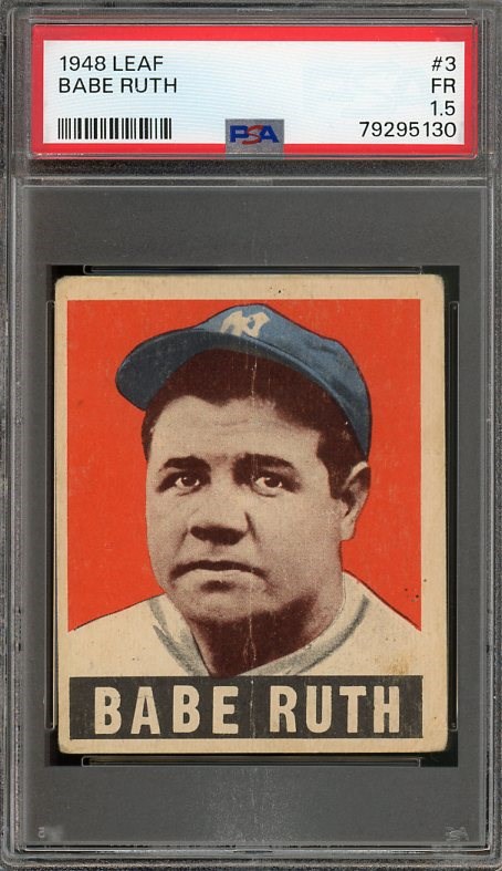 1948 Leaf Babe Ruth #3  PSA FAIR 1.5 - Vintage Ruth cards are drying up fast, regardless of grade. Here is a nice PSA 1.5 for your consideration.