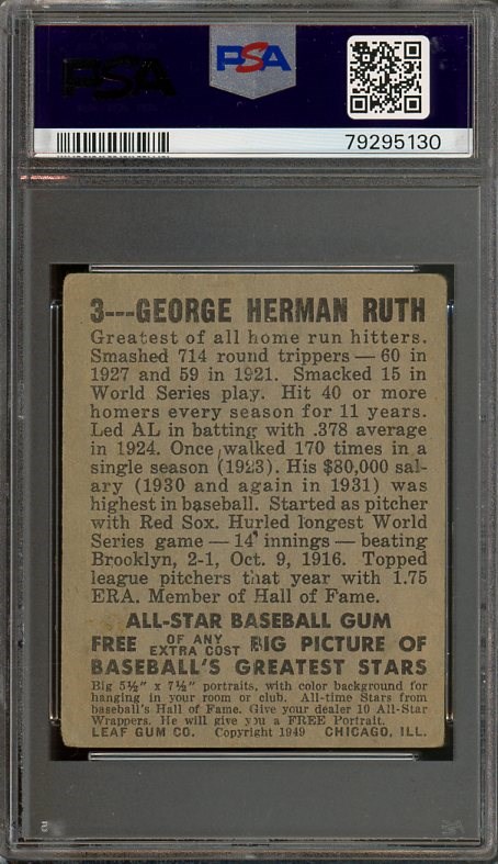 Lot # 4: 1948 Leaf Babe Ruth #3 PSA FAIR 1.5