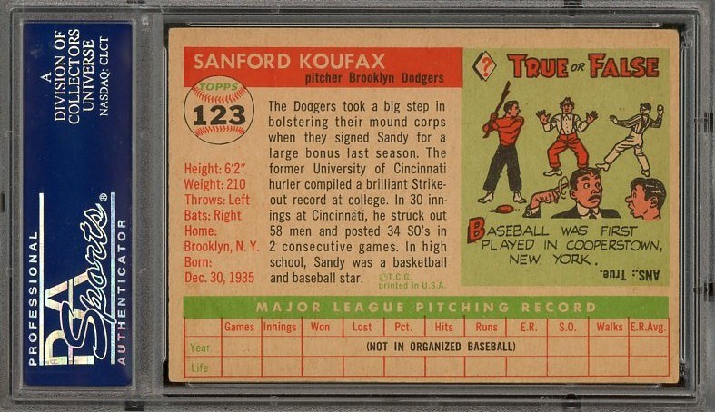 1955 Topps Sandy Koufax RC #123 PSA VG+ 3.5