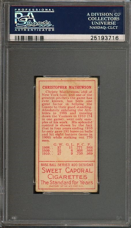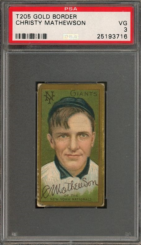 Lot # 11: 1911 T205 Gold Border Christy Mathewson PSA VG 3