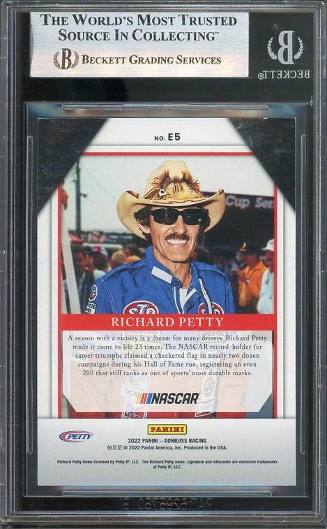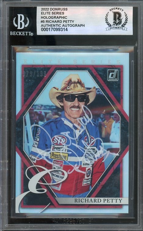 2022 Donruss Elite Series Richard Petty #5 (#'d/199) Autographed BGS Authentic - Signed in silver sharpie by "The King." A stock car pioneer that helped make NASCAR what it is today.