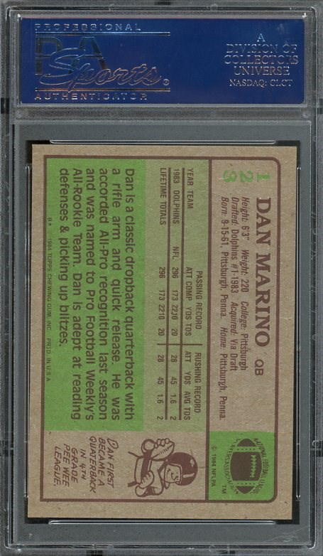1984 Topps Dan Marino RC #123 PSA NM/MT 8 - A pack fresh card with great registration, corners and strong color. A high quality PSA 8.