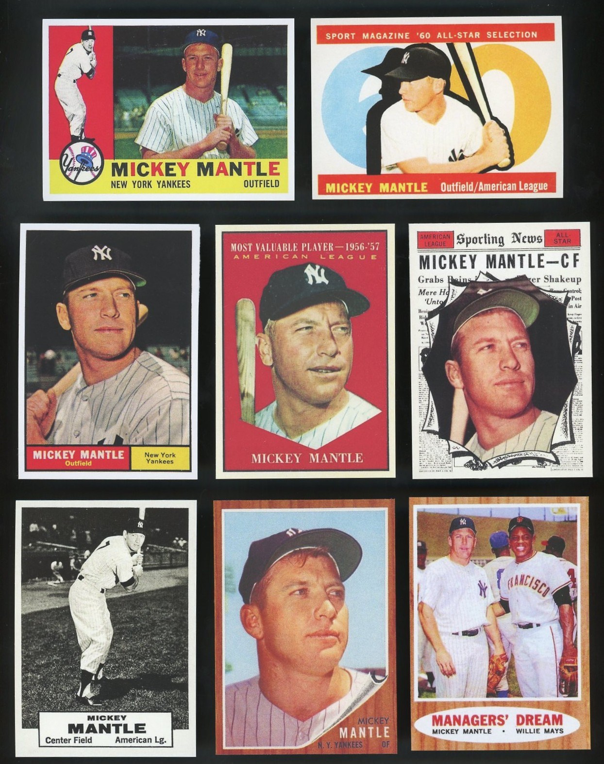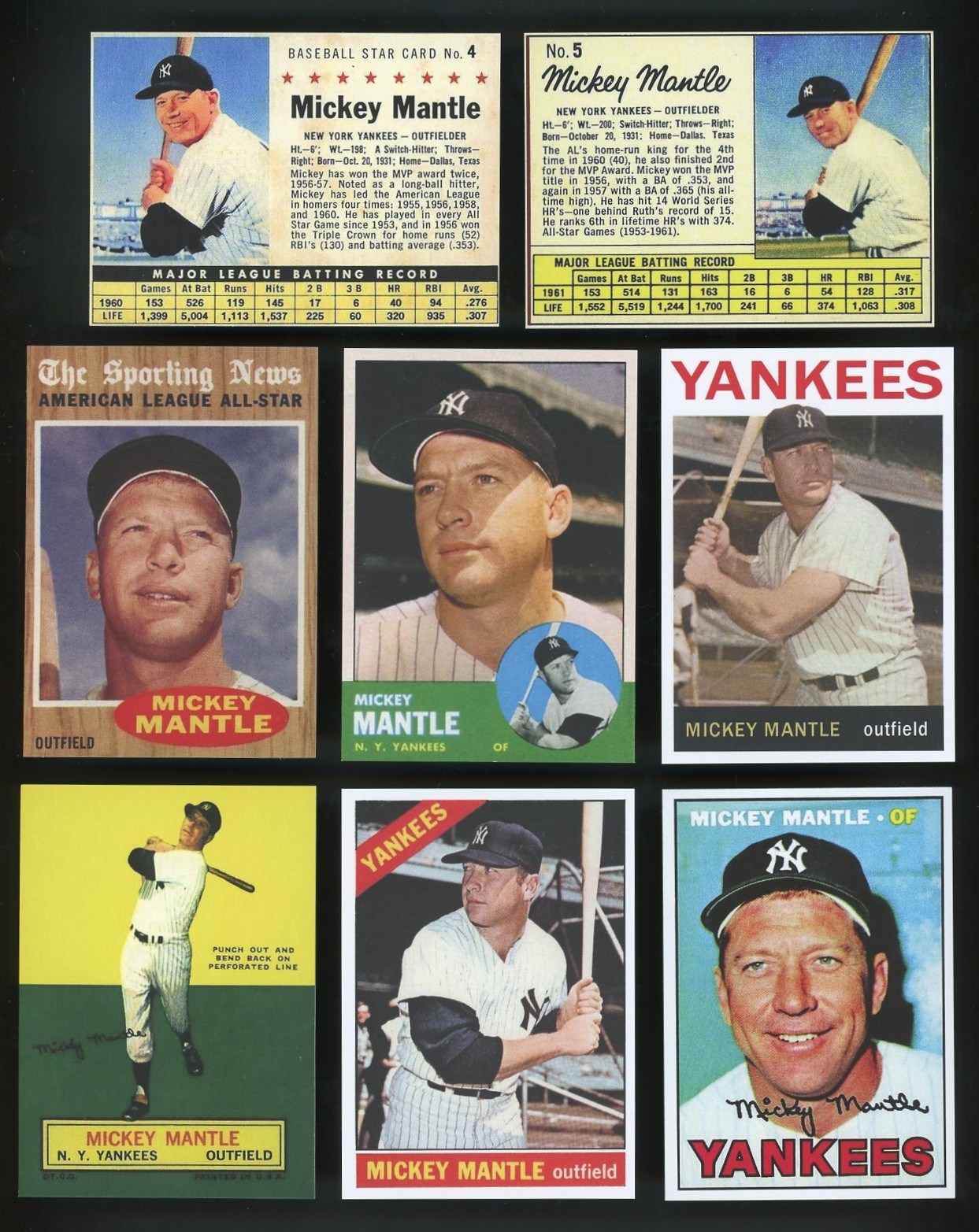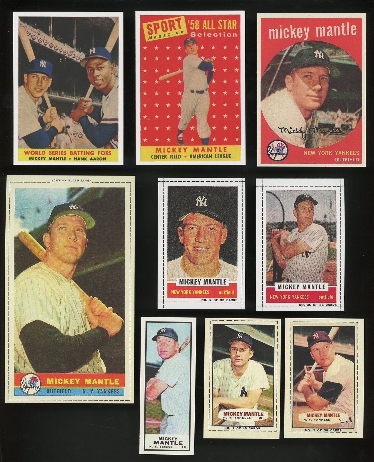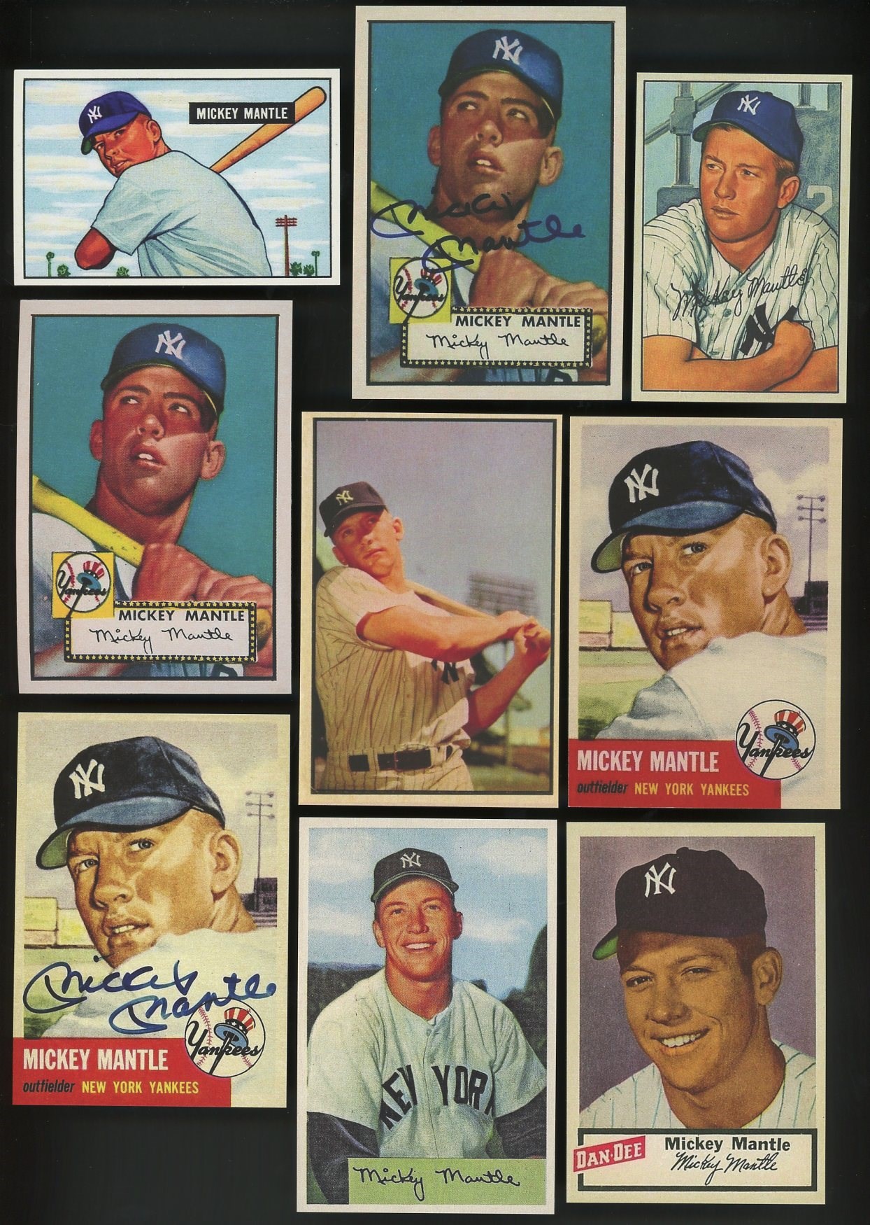 Mickey Mantle Lot of 43 Different Reprint Cards (1951-1969) - Lot includes all of Mantle's regular issues, plus several Bazooka reprints, regional issues and three with facsimile signatures. A great way to collect nearly all cards issued on Mantle in one lot!