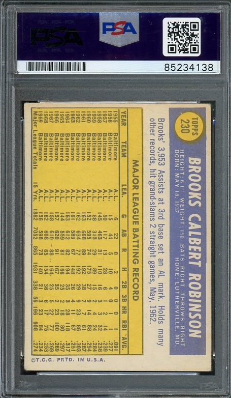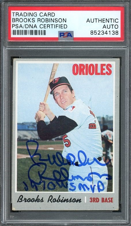 1970 Topps Brooks Robinson #230 Autographed "1970 WS MVP" PSA/DNA Authentic - Signed in blue sharpie, Robinson penned a great signature on this 1970 Topps issue. He also added the "1970 WS MVP" Inscription.