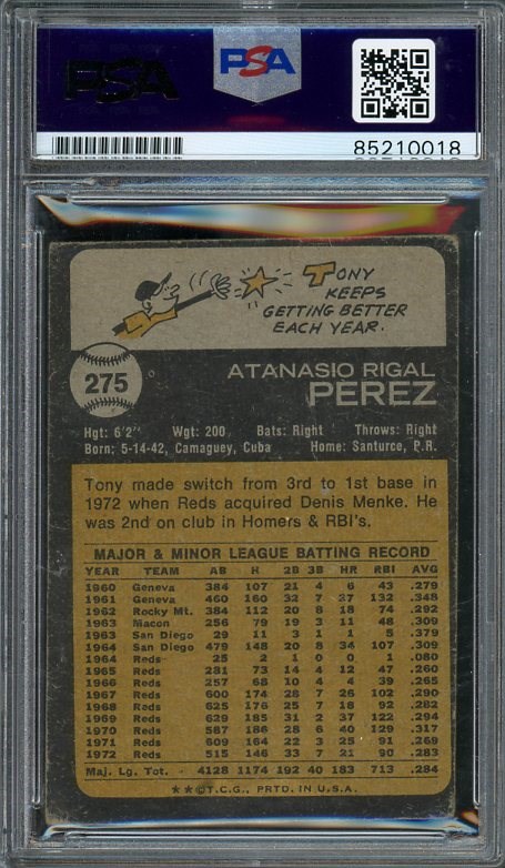 1973 Topps Tony Perez #275 Autographed PSA/DNA Authentic - Perez used a bold marker to ink a nice, large signature on this 1973 Topps issue. PSA/DNA certified.