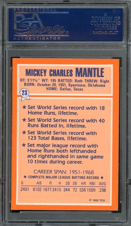 1985 Woolworth Mickey Mantle #23 PSA GEM MINT 10 - A tough card to find in PSA 10 grade, this is a Mantle card worth your attention.