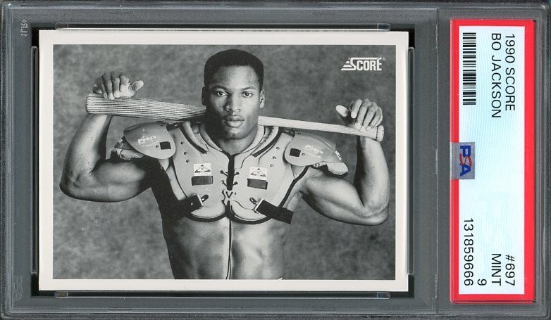 1990 Score Bo Jackson Baseball/Football #697 PSA MINT 9 - This was the hottest card in the industry in 1990 and propelled Score to a level that could compete with the major brands. Today, there is renewed interest in the card, as it has reached new all-time highs in the market.