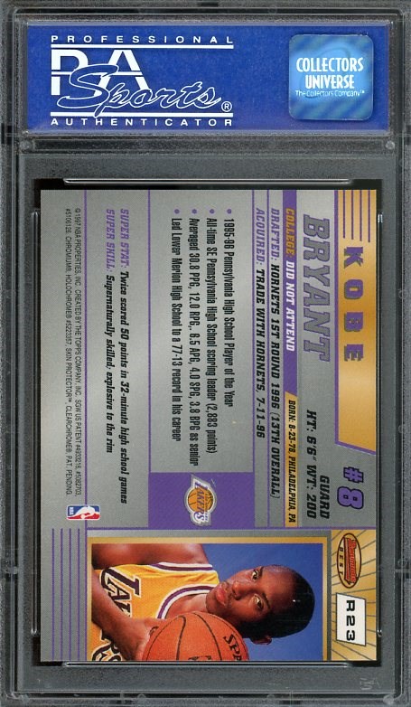 1996 Bowman's Best Kobe Bryant RC #R23 PSA MINT 9 - Bowman's Best was an upper tier brand for Kobe rookies in 1996, with similar production levels to Finest.
