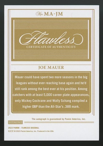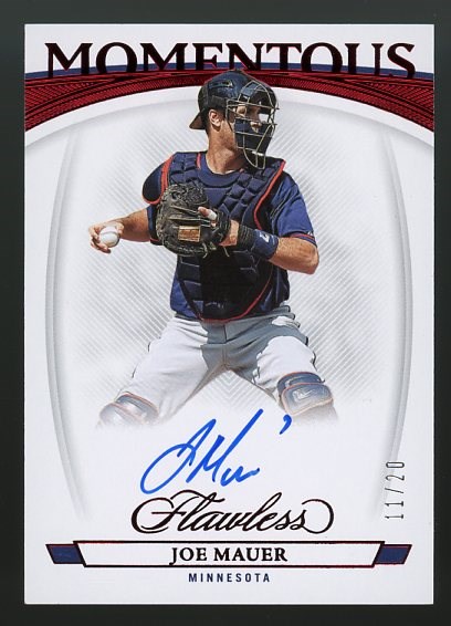 2023 Panini Flawless Joe Mauer Momentous Signatures Ruby #'d/20 - From Panini's best product, Flawless, here is an on-card signature from Hall of Famer Joe Mauer. NM/MT