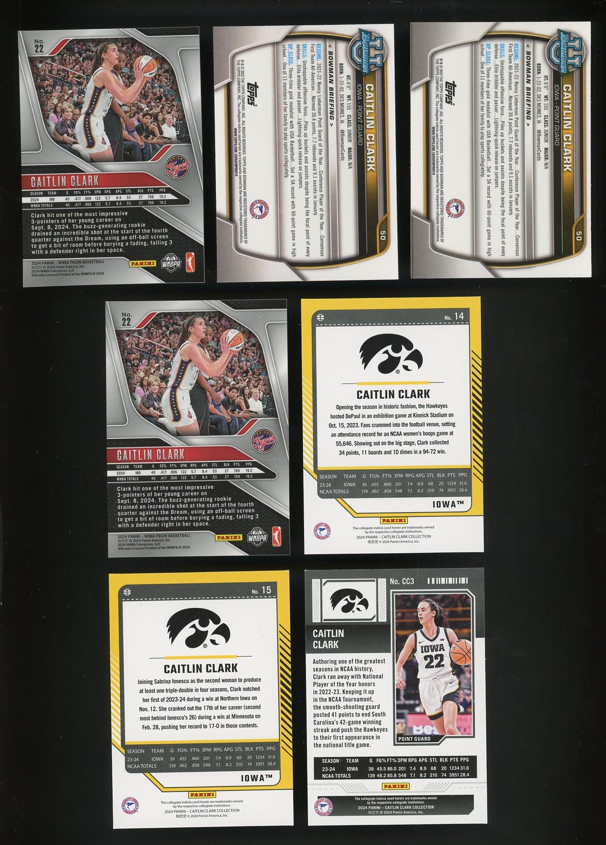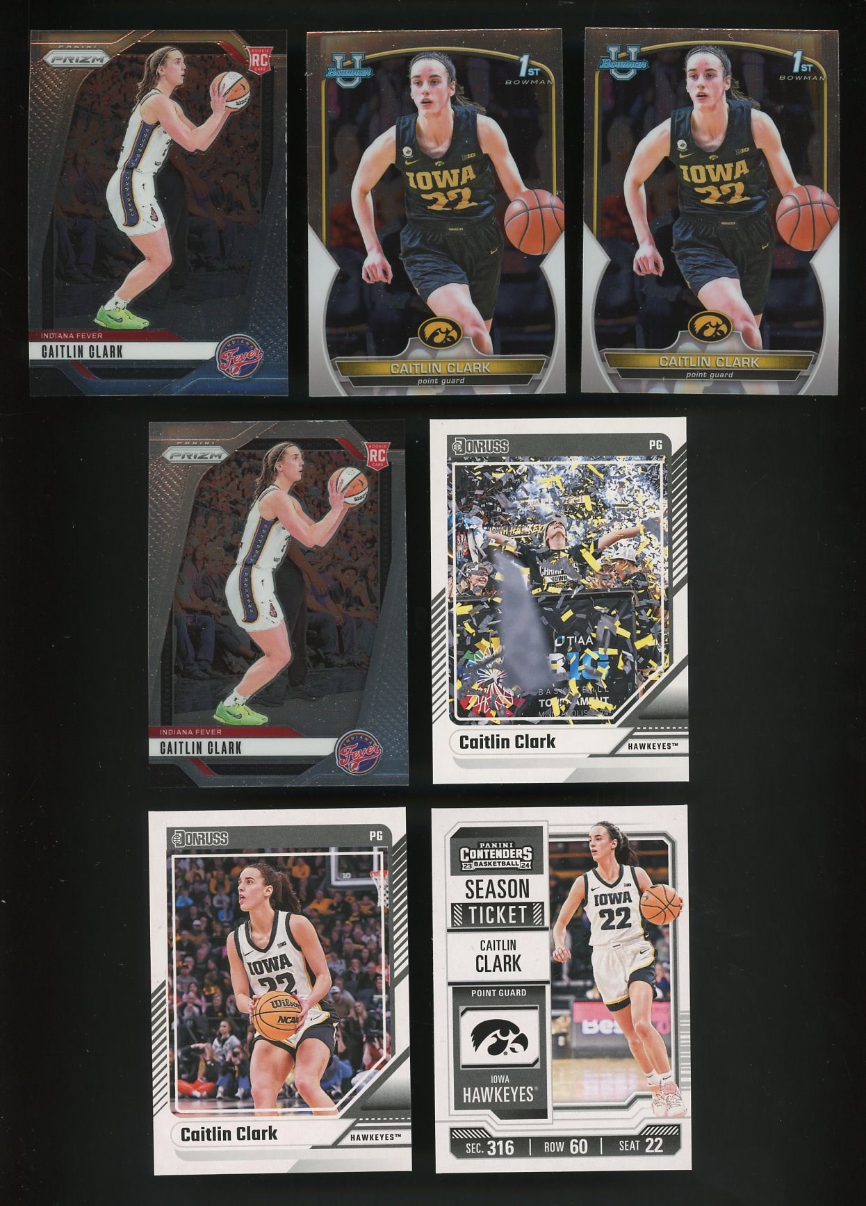 Lot of 7 Caitlin Clark Rookies (Chrome, Prizm, etc) - Here is a chance to stock up on some Caitlin Clark rookies. Cards are NM or better.