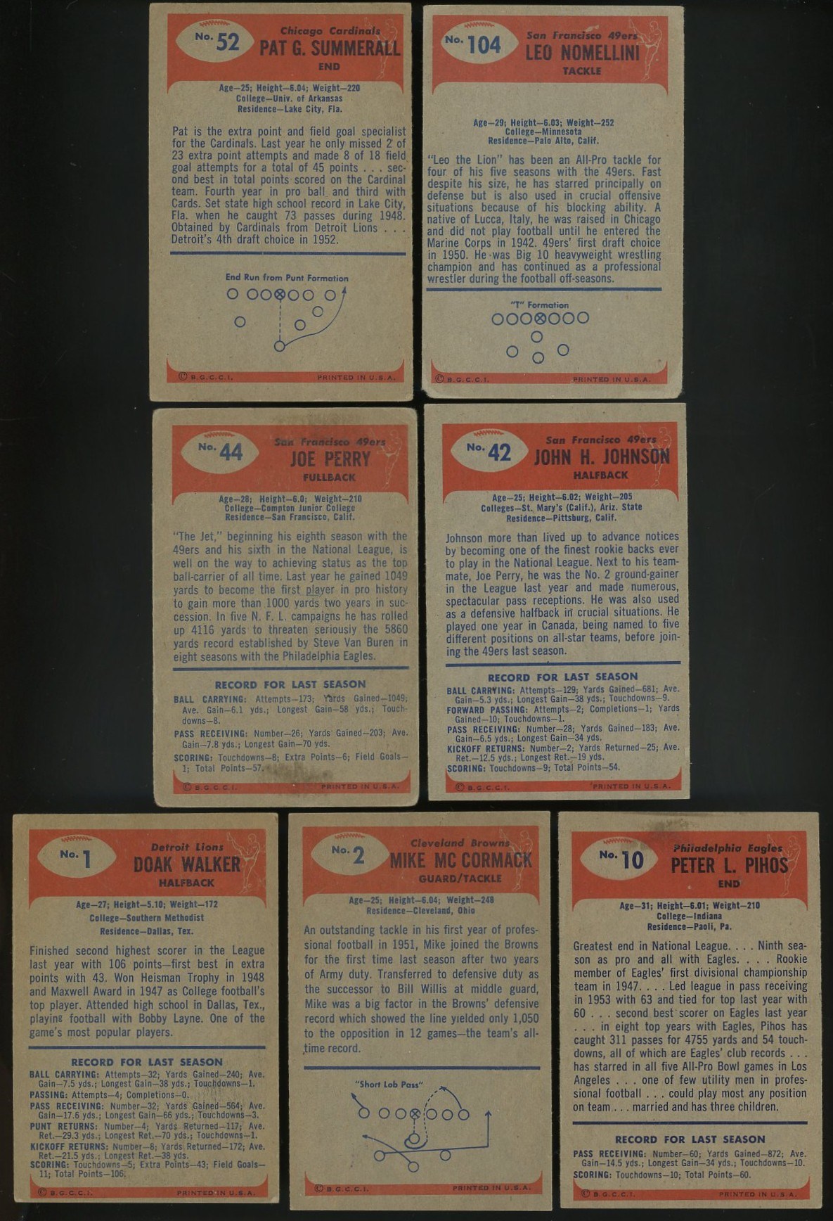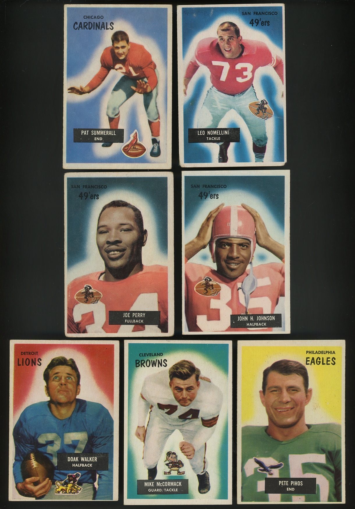 Lot of 7 Different Stars from 1955 Bowman Football - Sumerall, Nomellini, Perry, Johnson, Walker, Pihos, McCormick. Lower grade Good to VG/EX.