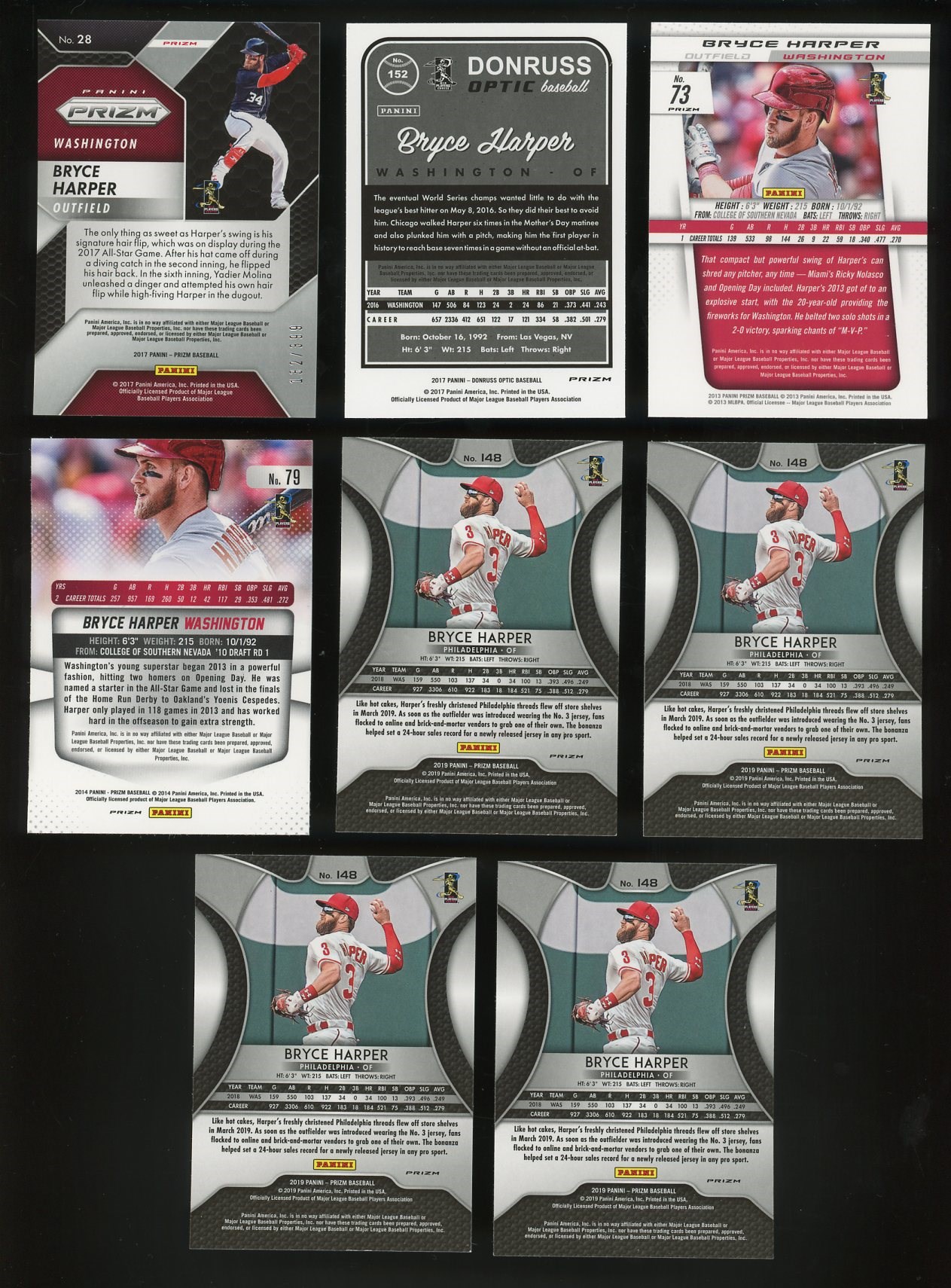 Lot # 561: Lot of 8 Bryce Harper Prizm Parallels (2013-2019)