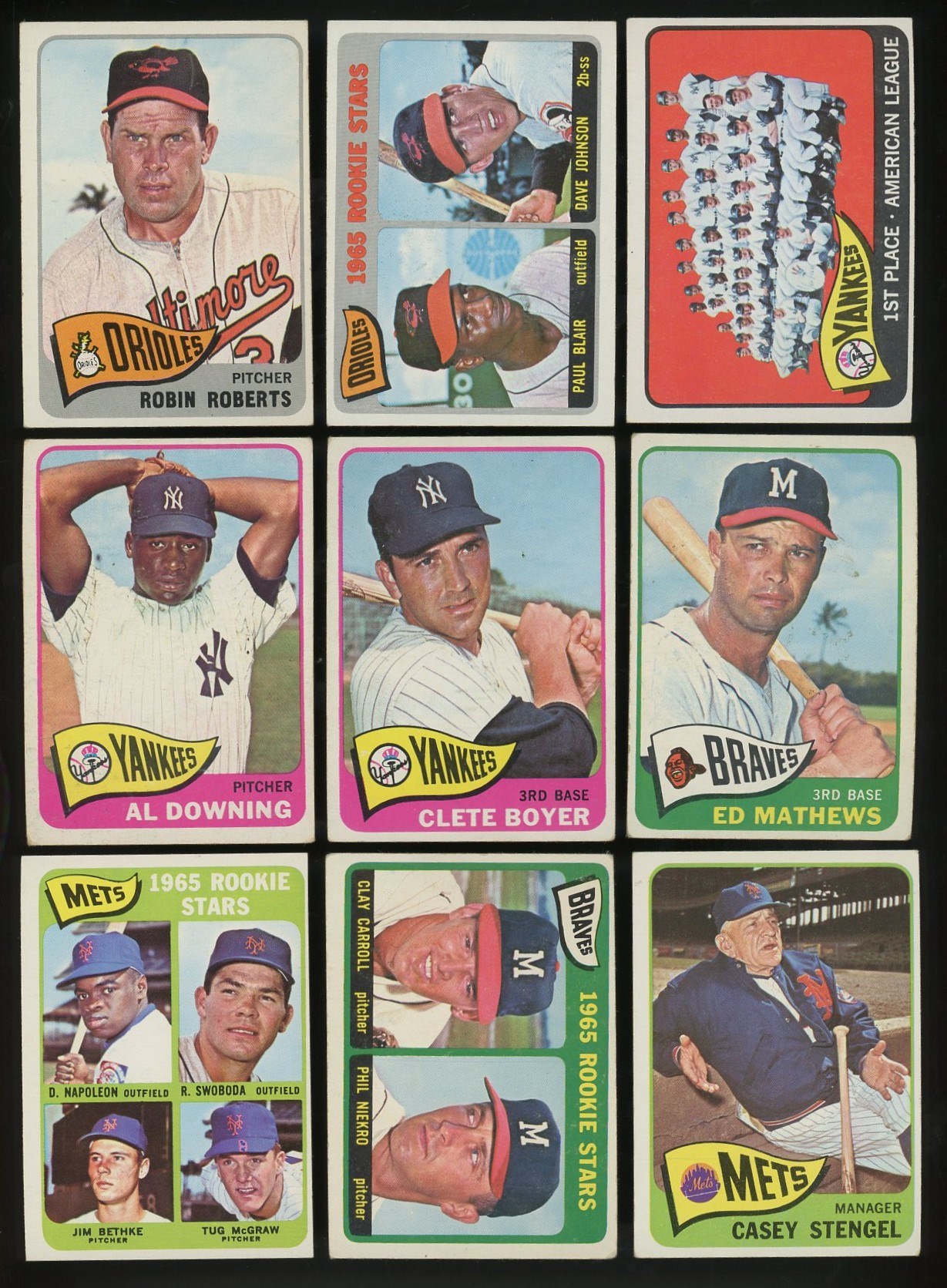 1965 Topps Baseball Lot of 350 Different (w/14 HOFers) - This lot is for 350 cards (more than half of the set) and includes several HOFers.  Cards are mostly VG to VG/EX with some better , some worse.