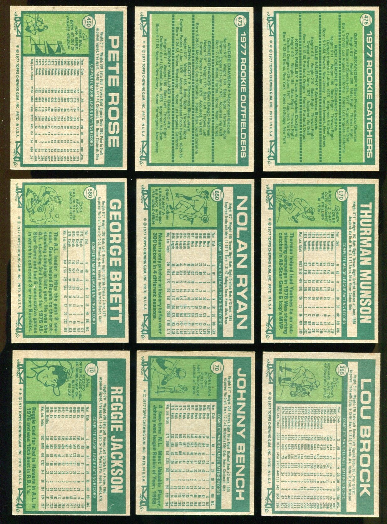 1977 Topps Baseball Complete Set - This set is EX to NM with most being EX/MT. There are a few better, and a few worse. The Dawson and Murphy rookies are EX/MT or better. $5.00 extra shipping.