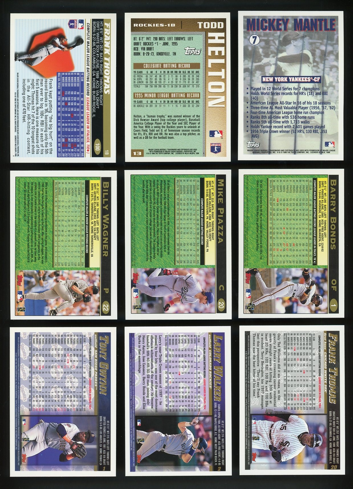 1996, 1997, and 1998 Topps Baseball Complete Sets - Here is a great way to fill in your Topps complete set collection.  You get all three sets in one lot. NM to NM/MT.