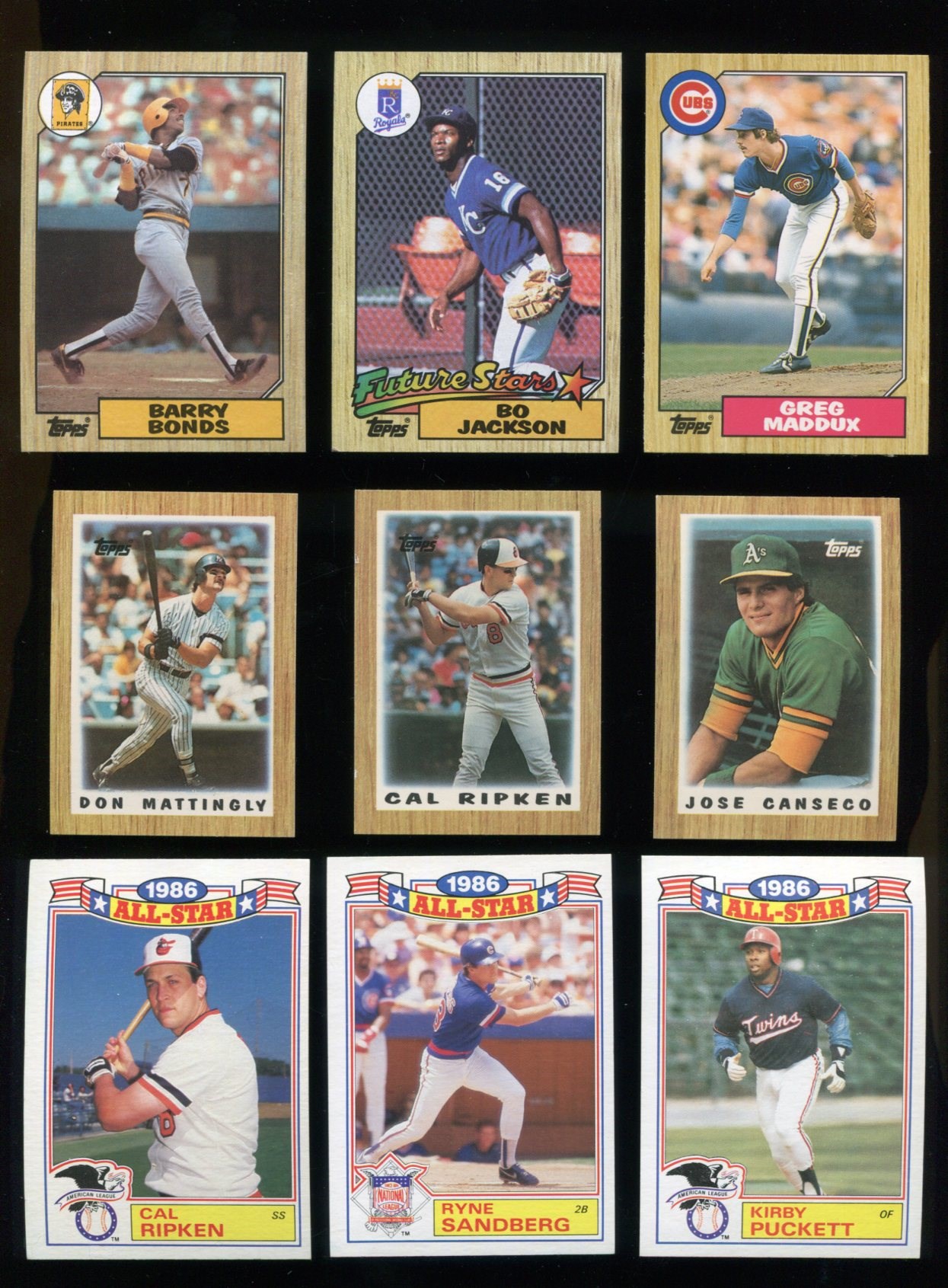 1987 Topps Baseball Complete Set (with Traded Set, Mini Set, and All-Star Glossy Set) - Loaded with rookie cards like Bonds, Bo Jackson, Will Clark, and Greg Maddux in the traded set. NM to NM/MT+.