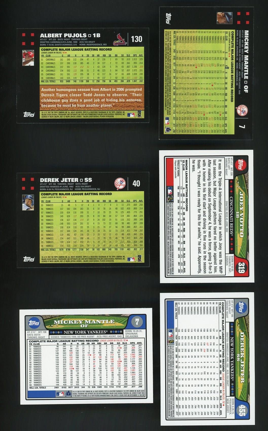 2007 and 2008 Topps Baseball Complete Sets - Here is a nice pair of Topps sets for your consideration. Both sets had a great design by Topps, and both added a special #7 card of Mickey Mantle. NM to NM/MT.
