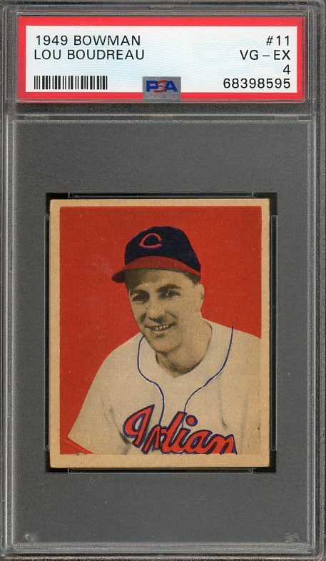 1949 Bowman Lou Boudreau RC #11  PSA VG/EX 4 - This card has exceptional eye appeal for the grade, with strong color and near perfect registration.