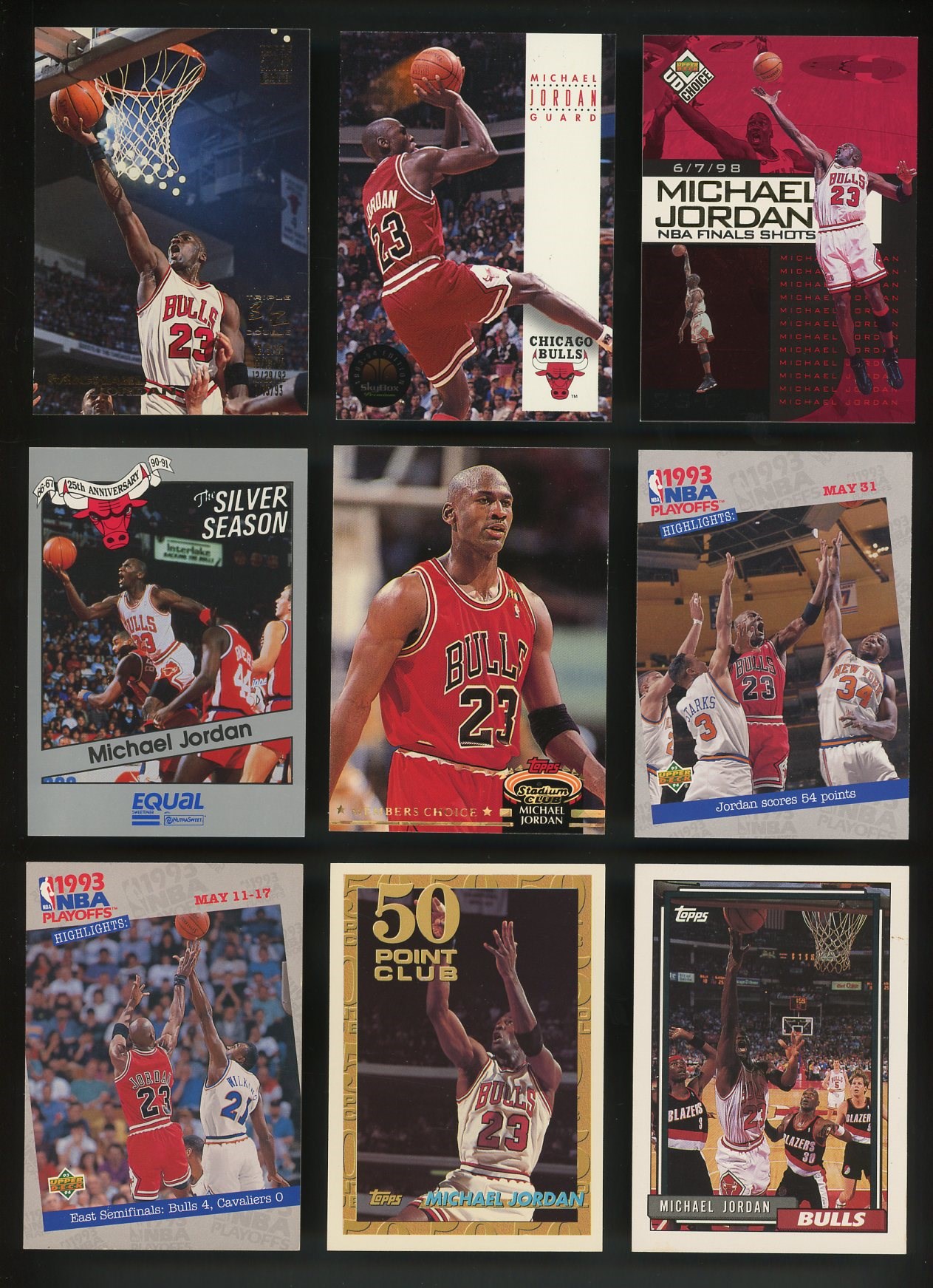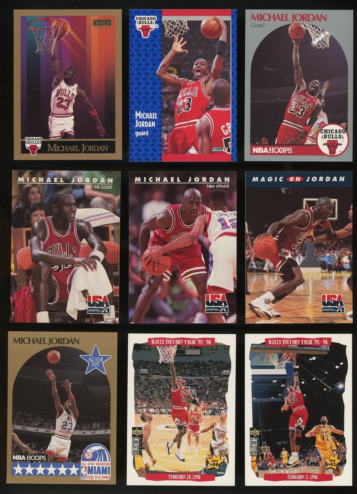 1989-1998 Michael Jordan Lot of 50 Different -A nice variety of Jordan cards from throughout his career. Cards are mostly NM or better with just a few lower.