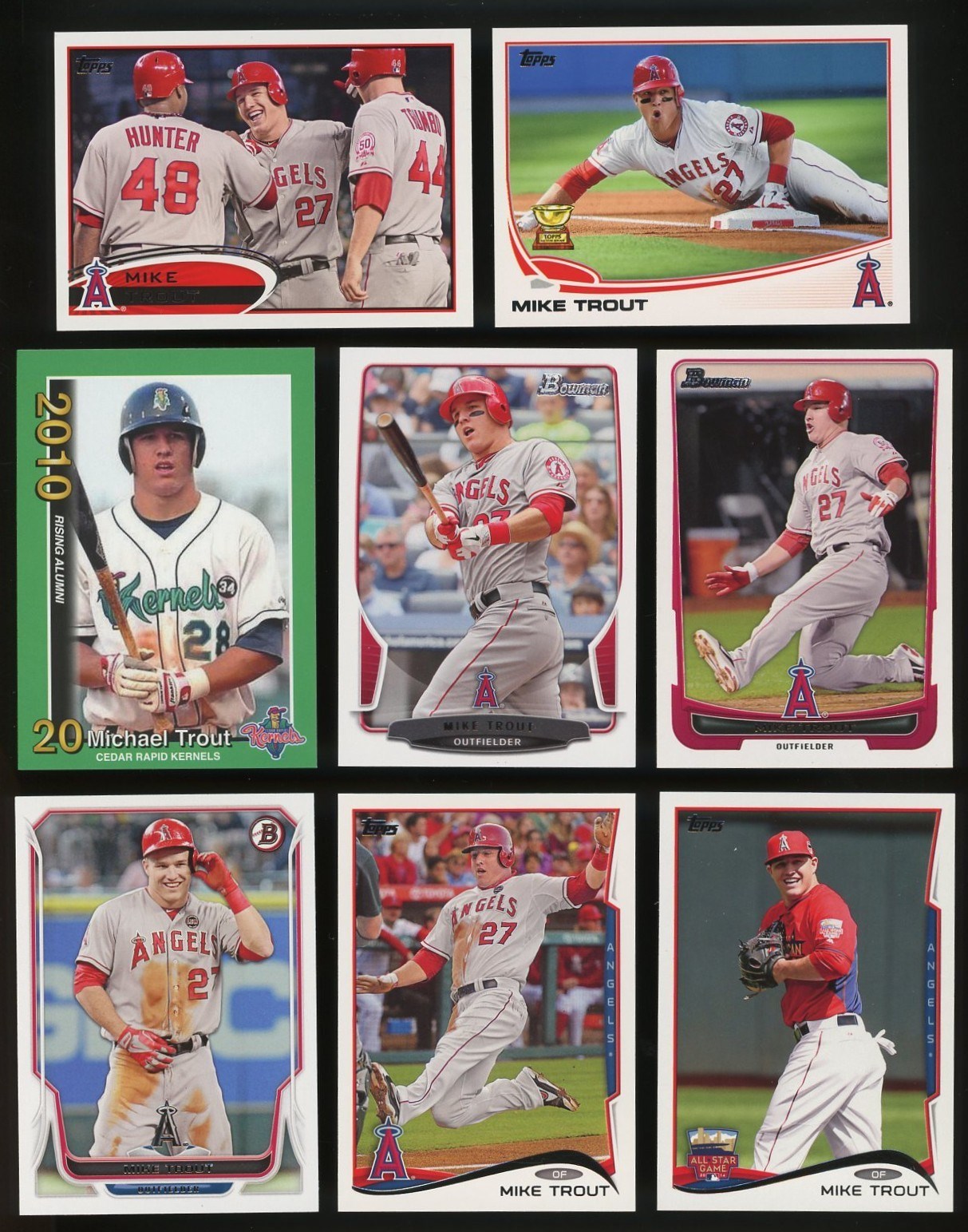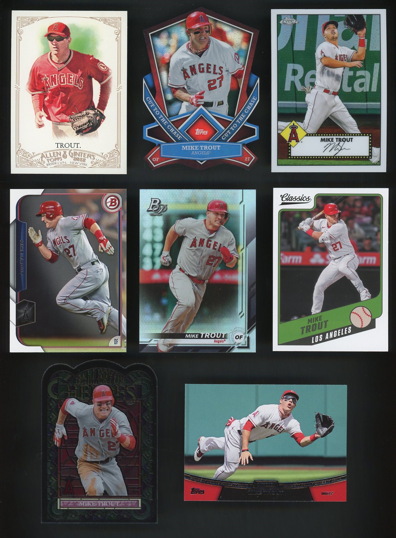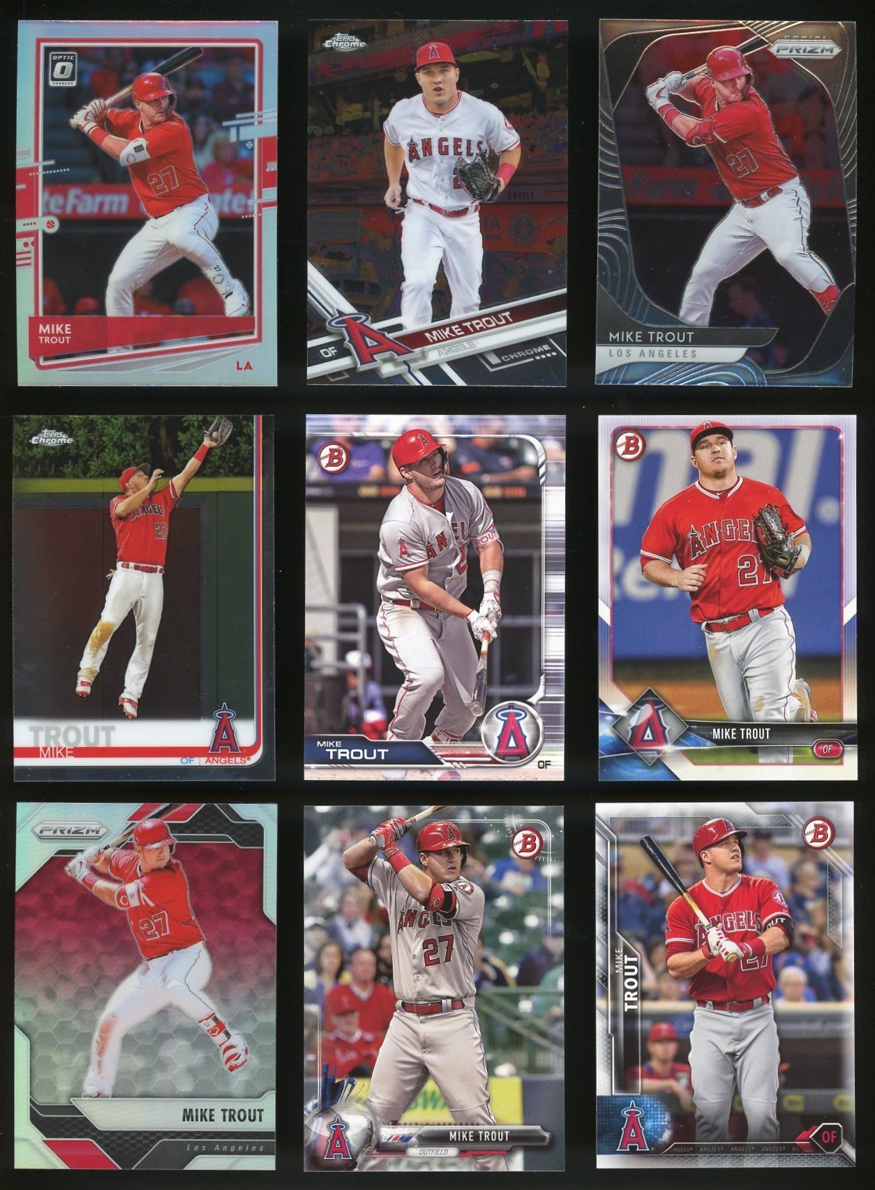2011-2022 Mike Trout Lot of 24 Different Cards - A nice variety of Trout cards in this lot. mostly Topps, Bowman and some Panini issues. See the scanned photos for all of the cards included.