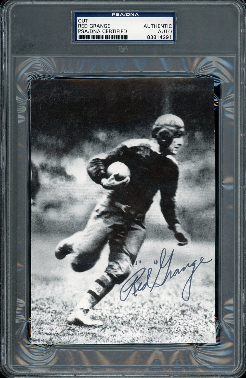 Red Grange Autographed 5X7 B&W Photo PSA/DNA Authentic - Here is a Red Grange, beautifully signed 5X7 photo that has been authenticated by PSA/DNA. A great item to display!