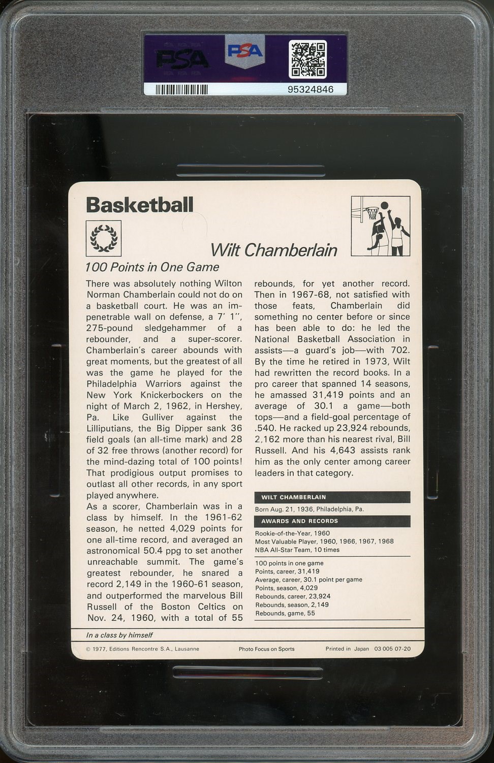 1977-79 Sportscaster Wilt Chamberlain (Japan) #07-20 PSA VG/EX 4 - Visually this looks like a near mint card. Technically, the lower left corner on the back has some wear.
