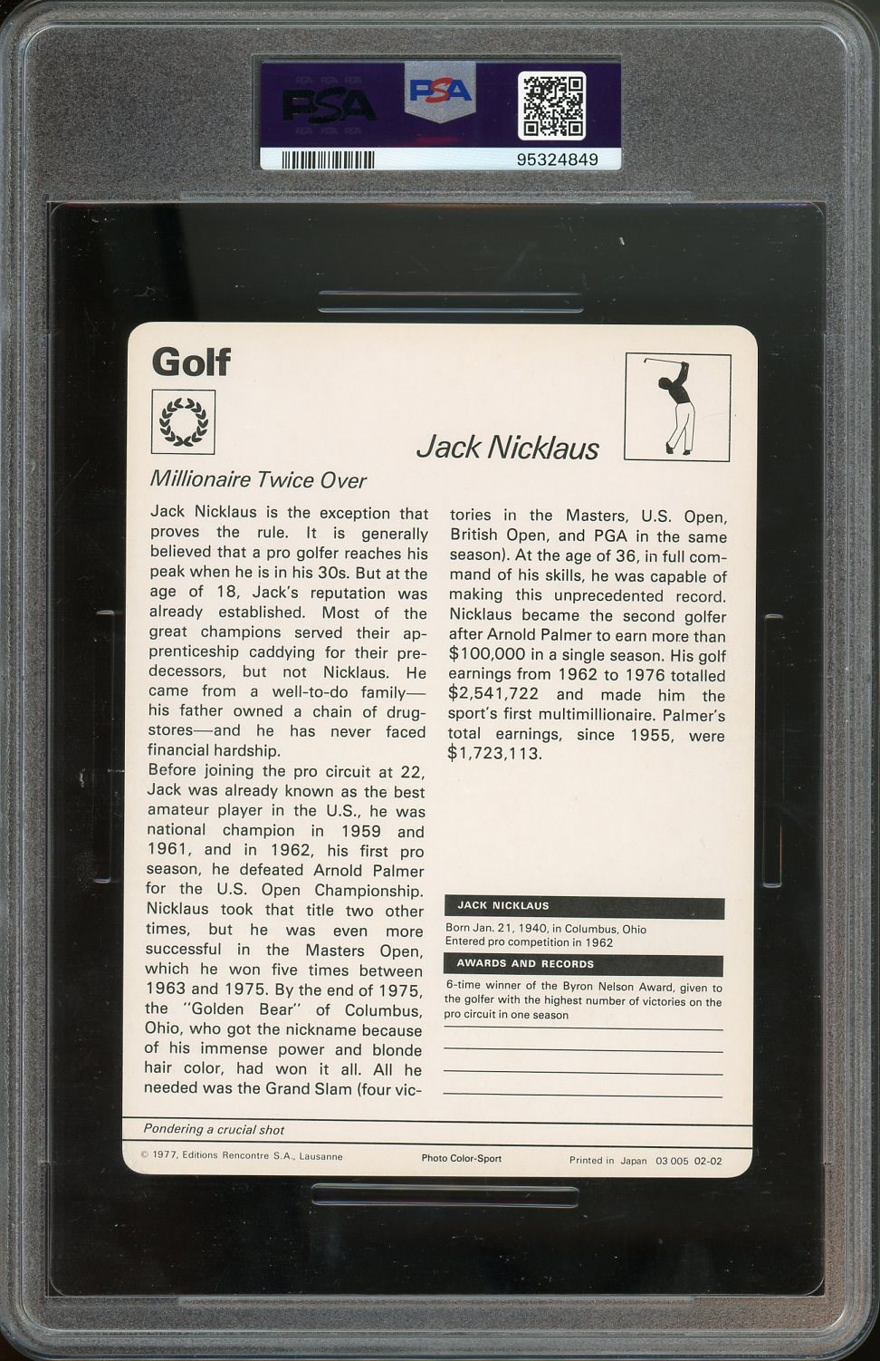 Lot # 969: 1977-79 Sportscaster Jack Nicklaus (Japan) #02-02 PSA MINT 9